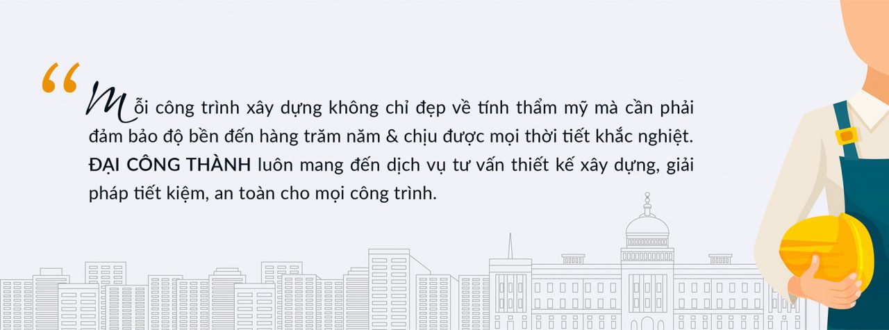 Đại Công Thành luôn đặt mục tiêu vươn tới các dịch vụ tiêu chuẩn cao, áp dụng những phương pháp phục vụ khách hàng tốt nhất và làm khách hàng hài lòng nhất. Đội ngũ cán bộ kỹ sư, kiến trúc sư và kỹ thuật viên luôn được quan tâm đào tạo nâng cao trình độ chuyên môn.